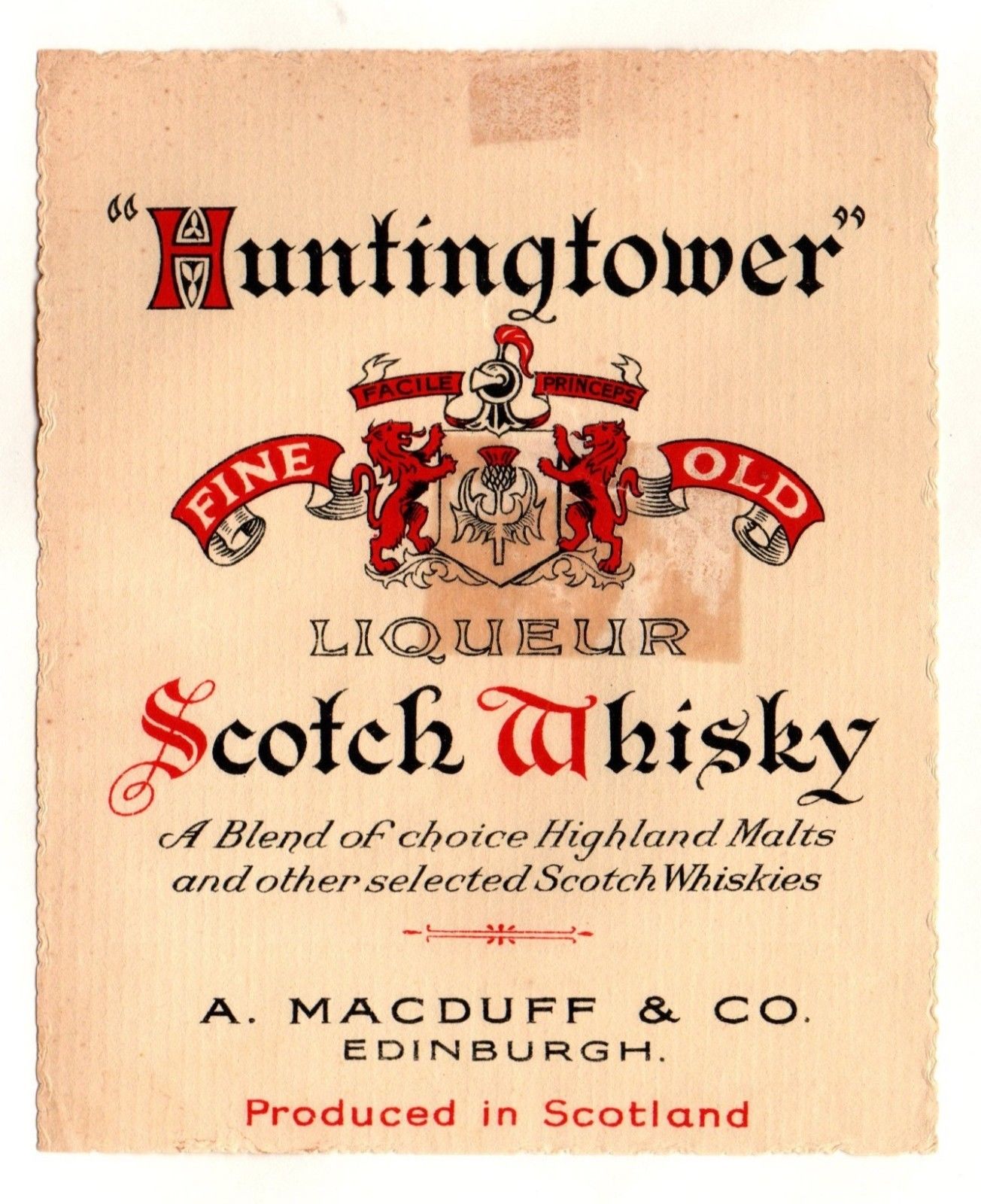 A. Macduff & Co. Edinburgh - Huntingtower Liqueur Scotch Whisky - old label