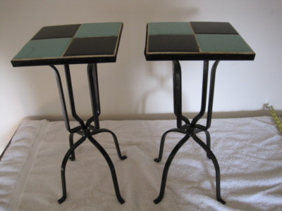 Title (ebay affiliate link): Pair of Tables Turquoise & Black Tile Top Wrought Iron