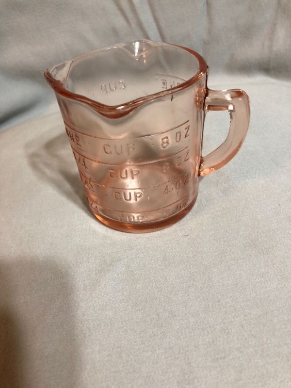 Title (ebay affiliate link): Vintage Kellogg''s pink depression glass one cup measuring cup. Good Condition.