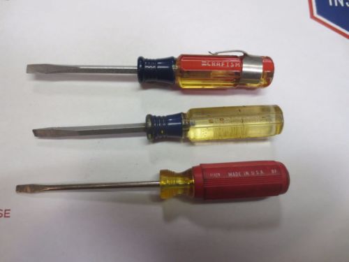 3 vintage CRAFTSMAN & SEARS Slotted Pocket Screwdrivers 41421 Vanadium 41429 USA
