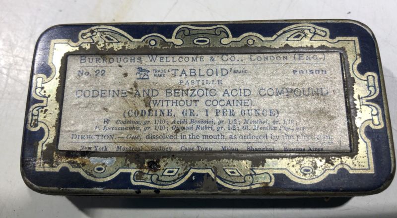 Title (ebay affiliate link): Antique Drug Store Pharmacy Apothecary Codeine Benzoic Acid Without Cocaine 1906