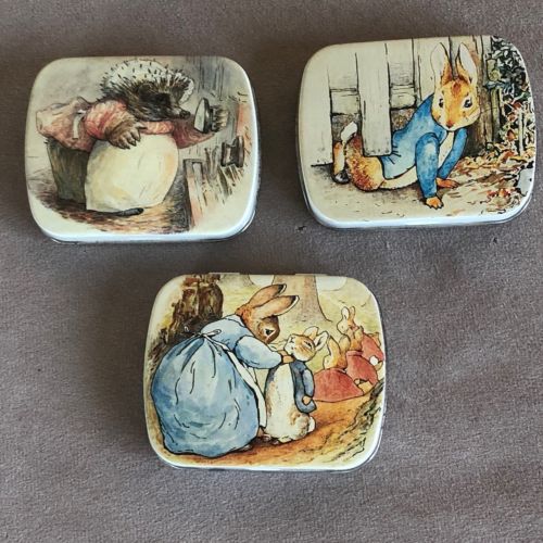 Title (ebay affiliate link): 3 Beatrix Potter Miniature Tin Boxes by Hunkydory Designs England