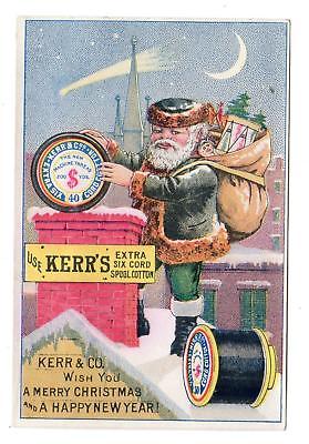 SANTA CLAUS*GREEN SUIT*KERR''S SIX CORD SPOOL COTTON*MERRY CHRISTMAS!*TRADE CARD