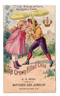 CROWN GOLD FILLED WATCH CASES*A CASE OF LOVE*MONTPELIER VT*A A MEAD*TRADE CARD