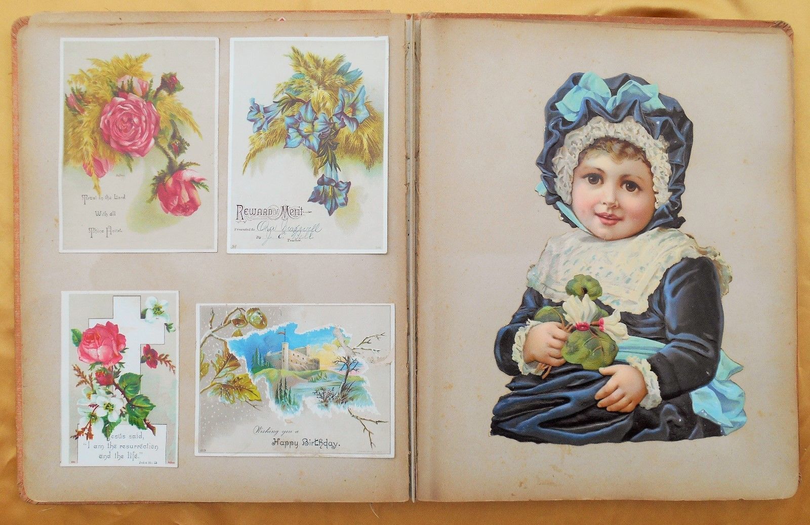 Title (ebay affiliate link): Rare 1880s Victorian Scrapbook Trade Card Album & Die Cuts - 207 items inside