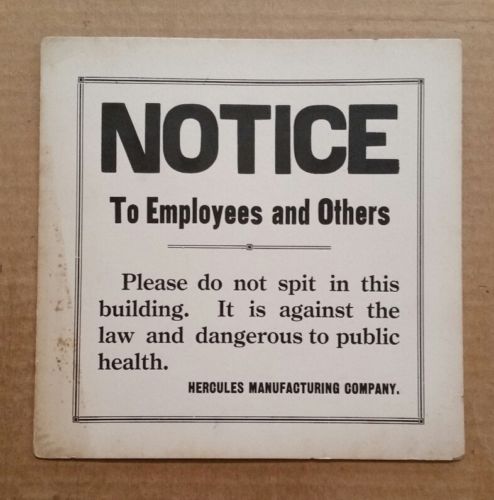 Title (ebay affiliate link): "Do Not Spit in This Bldg." Hercules Mfg.Co.Centerville,IA.,Sign,1920''s-30''s