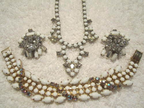Title (ebay affiliate link): EXQUISITE Quality Vintage Lot of Aurora Borelis, Milkglass & Rhinestone Jewelry