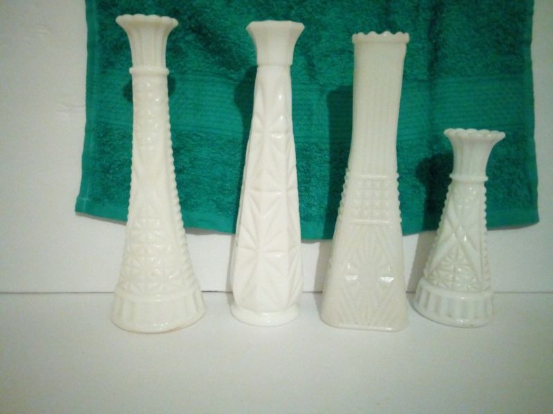 White Milk Glass Steim Vases Lot Of 4.
