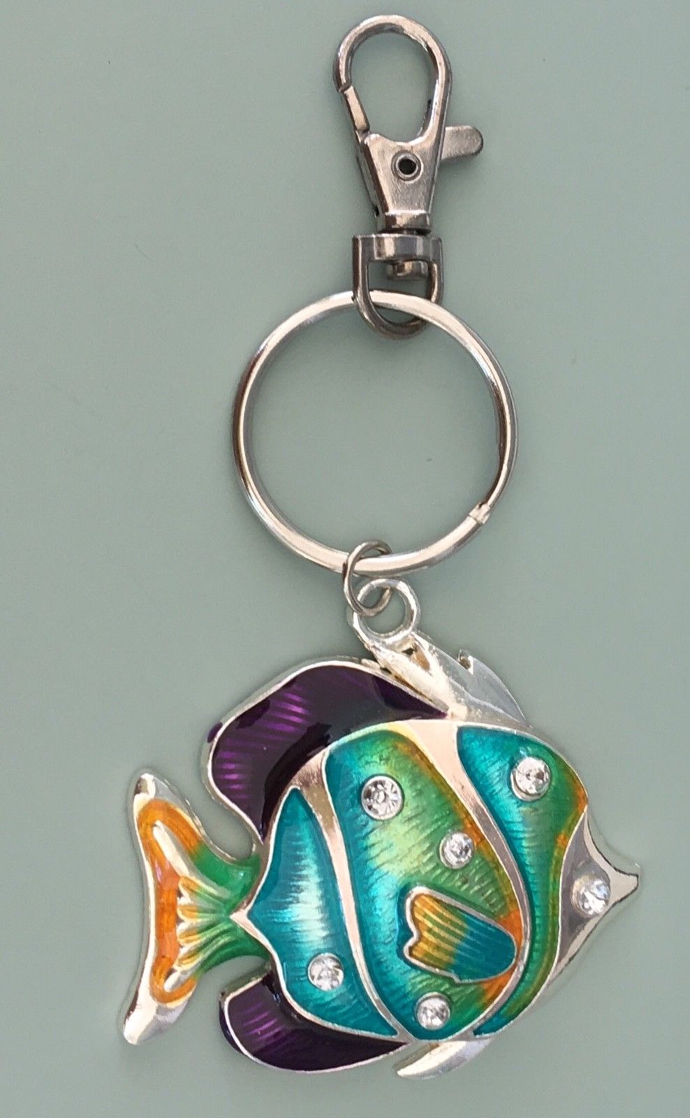 Title (ebay affiliate link): Vintage Tropical fish key chain holder in enamel & silver tone metal