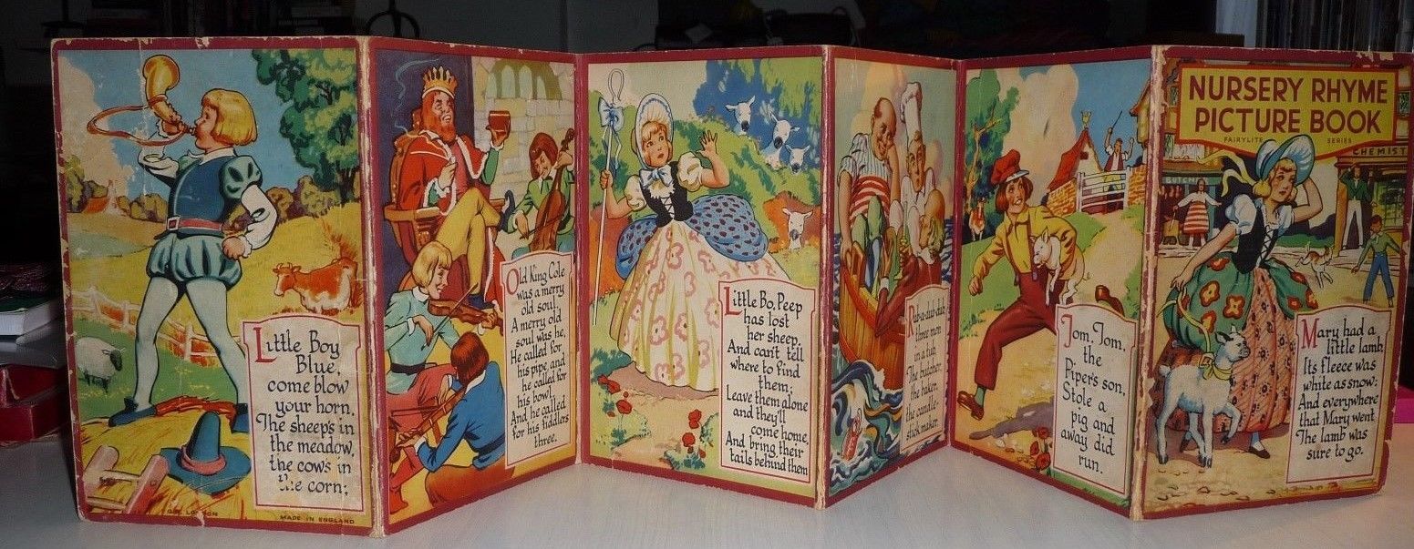 Title (ebay affiliate link): Nursery Rhyme Picture Book Fairylite Series - Concertina Vintage Book-Battered!!