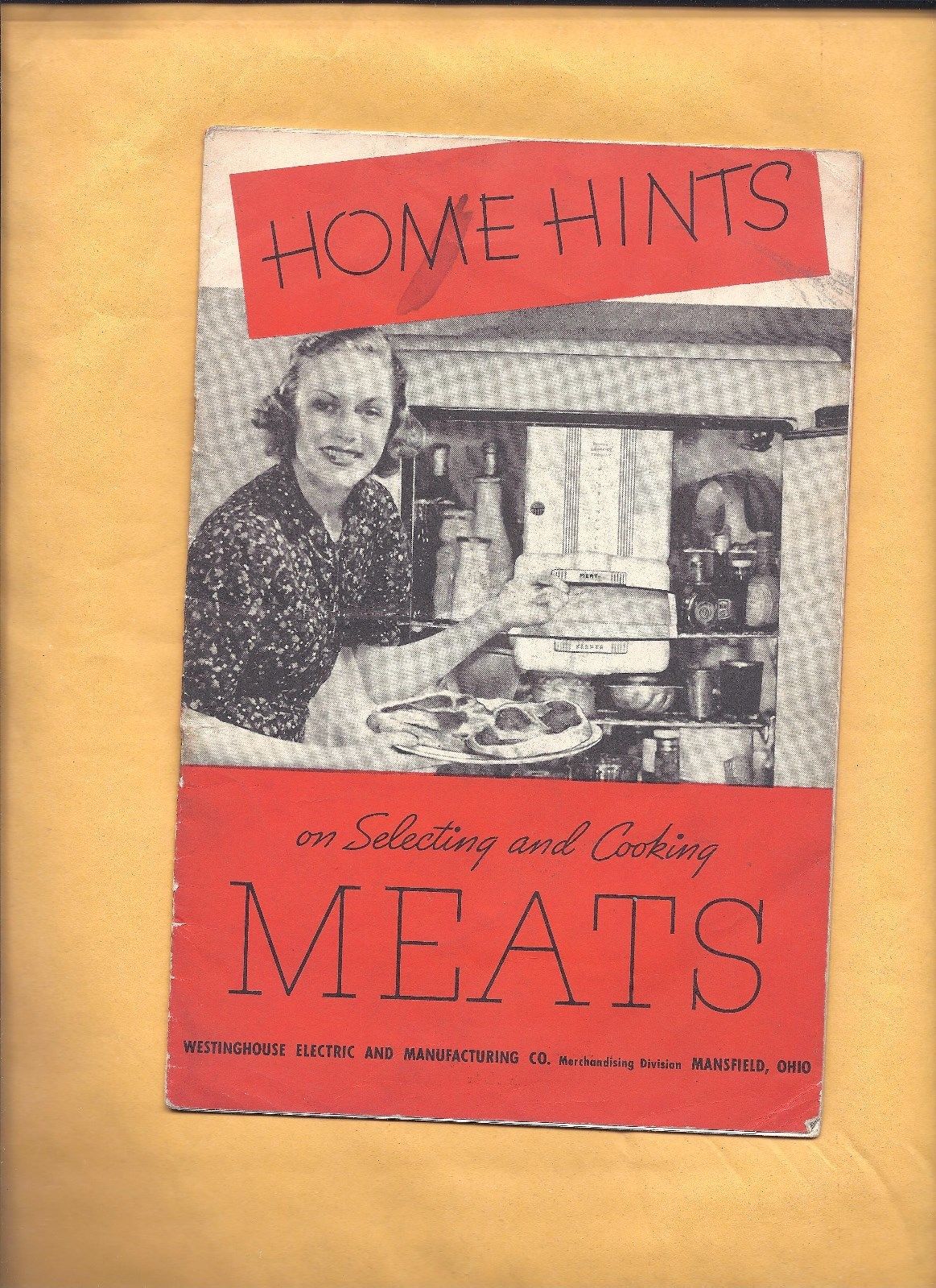 Title (ebay affiliate link): Vintage Booklet: "HOME HINTS on Selecting & Cooking Meats" (Westinghouse, 1937)