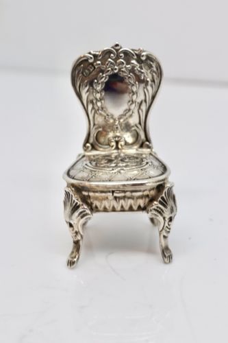 Title (ebay affiliate link): A Nice Antique Dutch? Solid Silver Dolls Furniture Miniature Chair