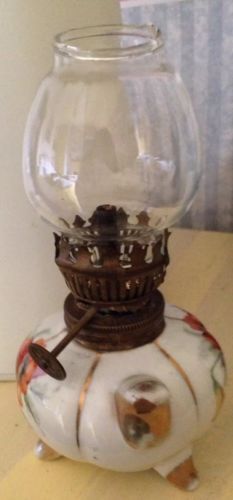 Title (ebay affiliate link): Miniature oil lamp, ceramic base, glass shade, undated
