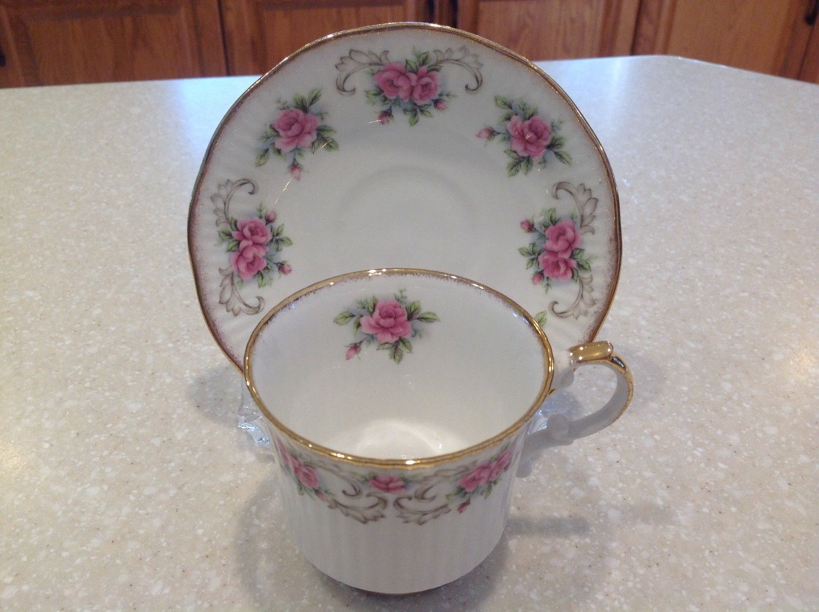 Royal Dover England Bone China cup and saucer pink roses Gold Trim