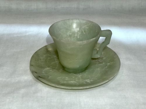 Vintage Chinese Carved Jade Demitasse; Tea Cup & Saucer