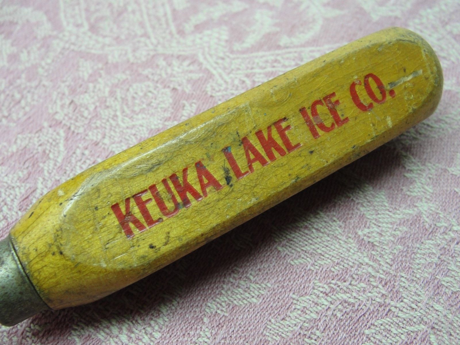 Title (ebay affiliate link): Vintage Wood Handle Ice Pick Keuka Lake NY Company Advertising Coolerator & Coal