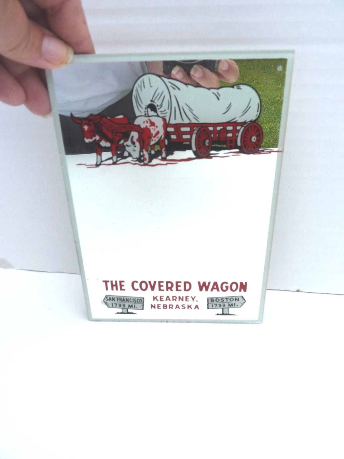 Title (ebay affiliate link): ANTIQUE THE COVERED WAGON KEARNEY NEBRASKA 5" X 7" ADVERTISING MIRROR CHEAP!!
