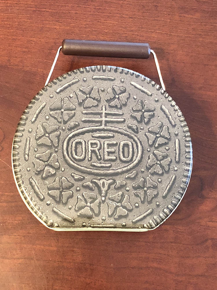 vtg OREO COOKIE Tin with Handle LUNCH BOX metal
