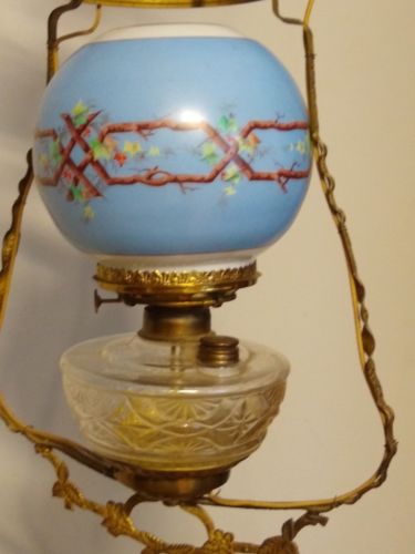 Vintage ornate P & A mfg co hanging oil lamp converted to electric