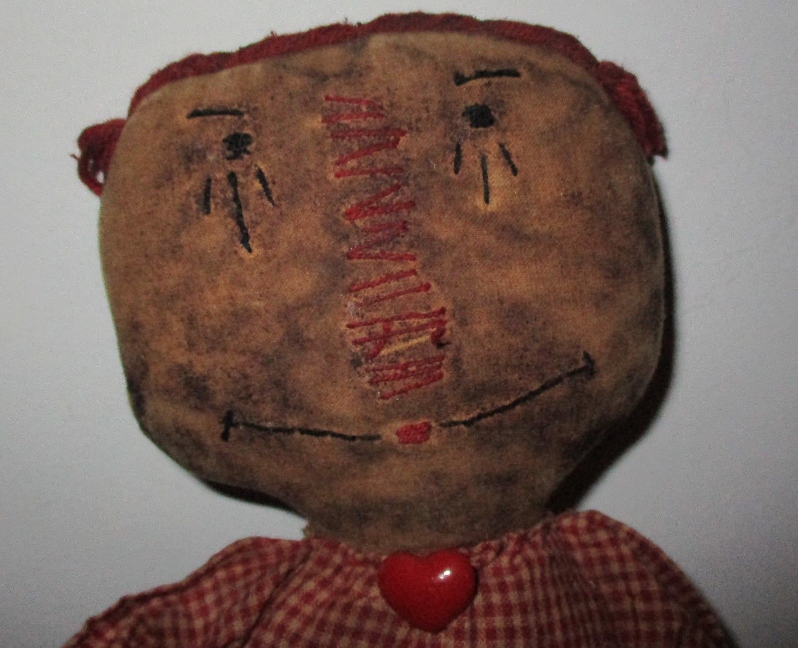Title (ebay affiliate link): Primitive Folk Art Raggedy Annie "Key to My Heart" 29" signed-ptd muslin