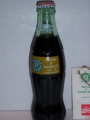 Title (ebay affiliate link): 8 OZ COCA COLA COMMEMORATIVE BOTTLE - 1993 PILOT CLUB OF AMERICA 48 YEARS