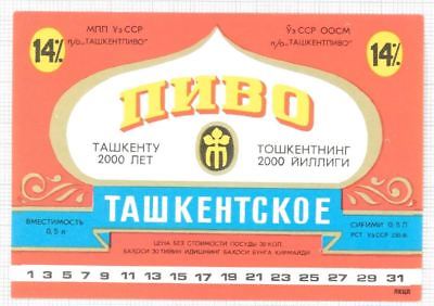 Title (ebay affiliate link): UZBEKISTAN,USSR Tashkentpivo,Tashkent Tashkentskoe 14% beer label C1791 003