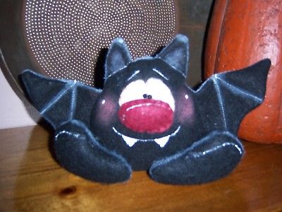 PRIMITIVE HANDCRAFTED HALLOWEEN FOLK ART BLACK BAT SHELF SITTER