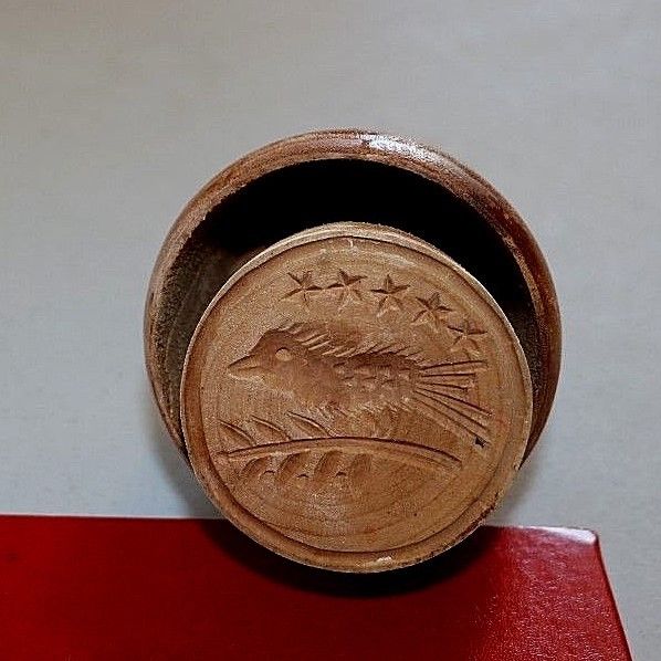 Title (ebay affiliate link): Antique Primitive Wooden Butter Mold Stamp Bird on a Branch with 5 Stars