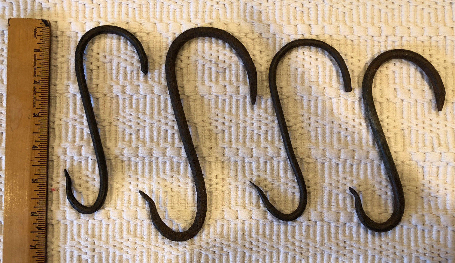 Title (ebay affiliate link): 4 Antique Wrought Iron "S" Hooks Butcher Meat Garden Home Primative