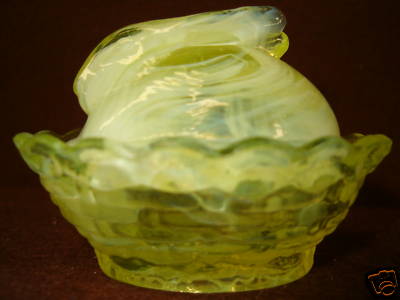 VASELINE MILK SLAG GLASS BUNNY RABBIT ON NEST DISH SALT