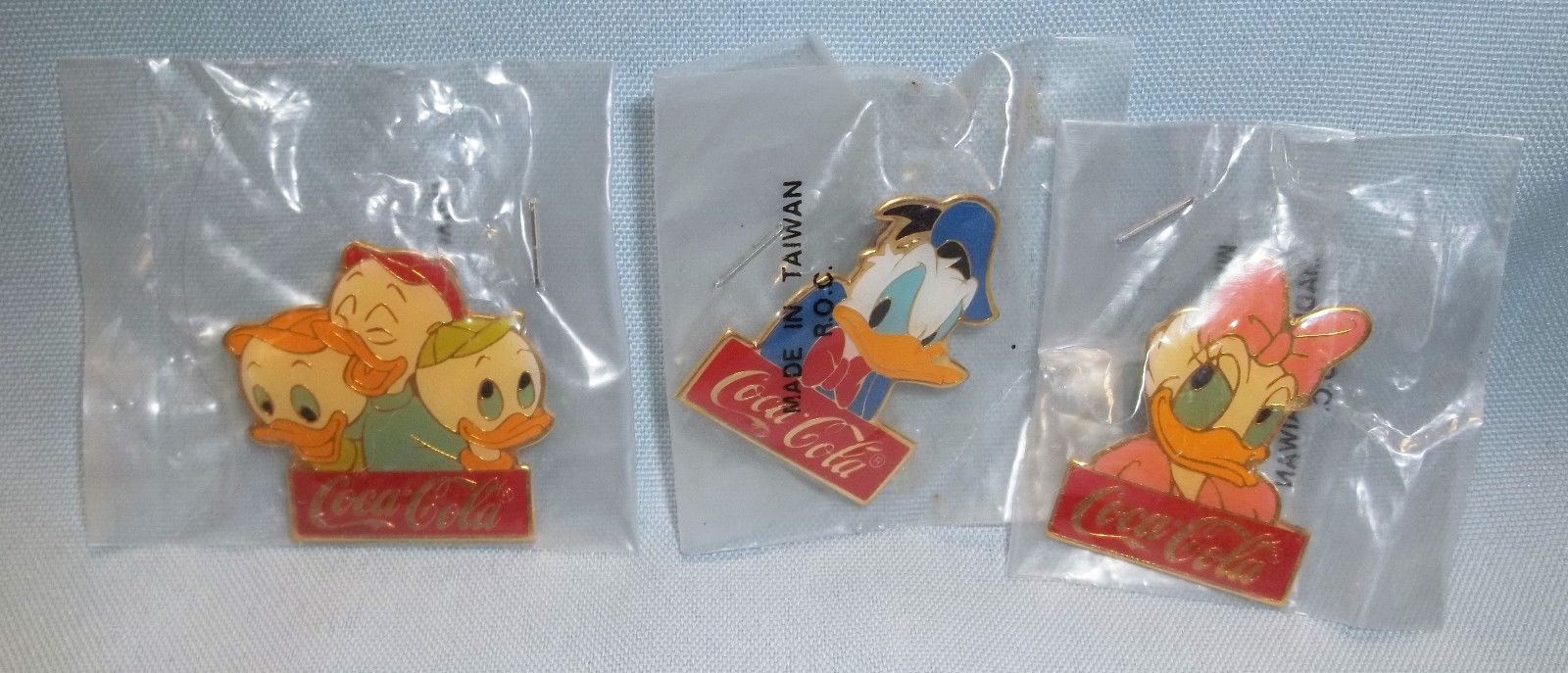 Title (ebay affiliate link): 3 COCA COLA/DISNEY PINS-DAISY DUCK, DONALD DUCK, HUEY, DEWEY & LOUIE-ALL SEALED