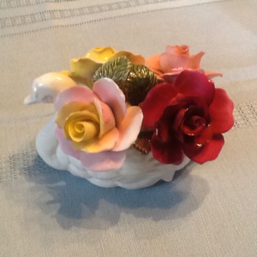 Title (ebay affiliate link): Vintage Capodimonte Bone china Duck w/4 Rose Flowers in back