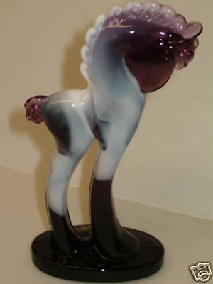 AMETHYST PURPLE AND MILK SLAG ART GLASS PONY HORSE DECO