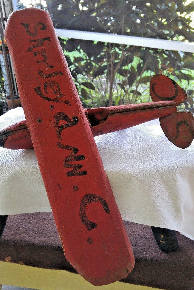 VINTAGE OLD HANDMADE WOODEN TOY AIRPLANE ~ HAS GREAT CHARACTER