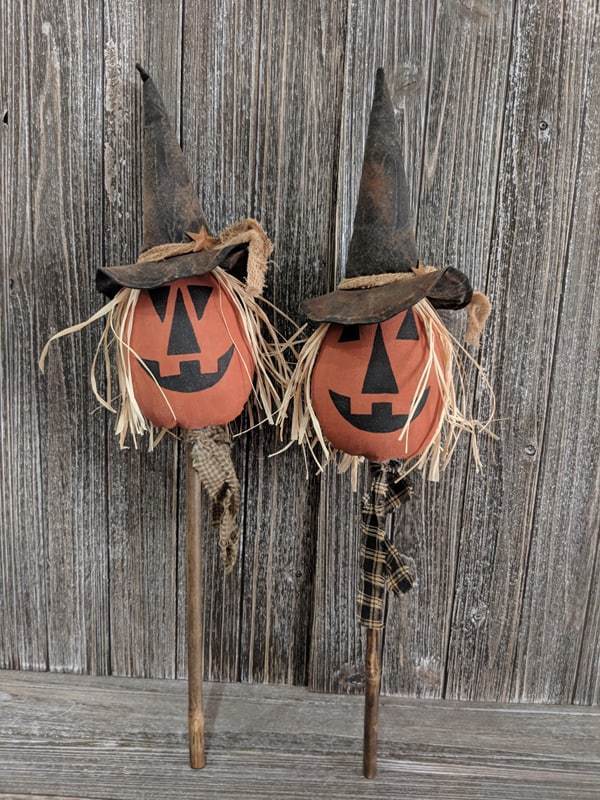 Primitive Halloween Pumpkin Jack o Lantern Witch Pokes Folk Art