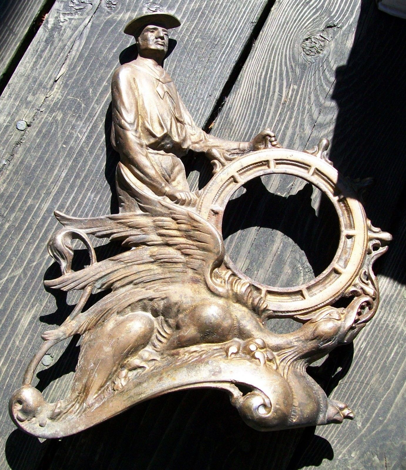 SPANISH AMERICAN WAR SAILOR DRAGON CAST IRON CLOCK FRAME PAT APL"D FOR 1899
