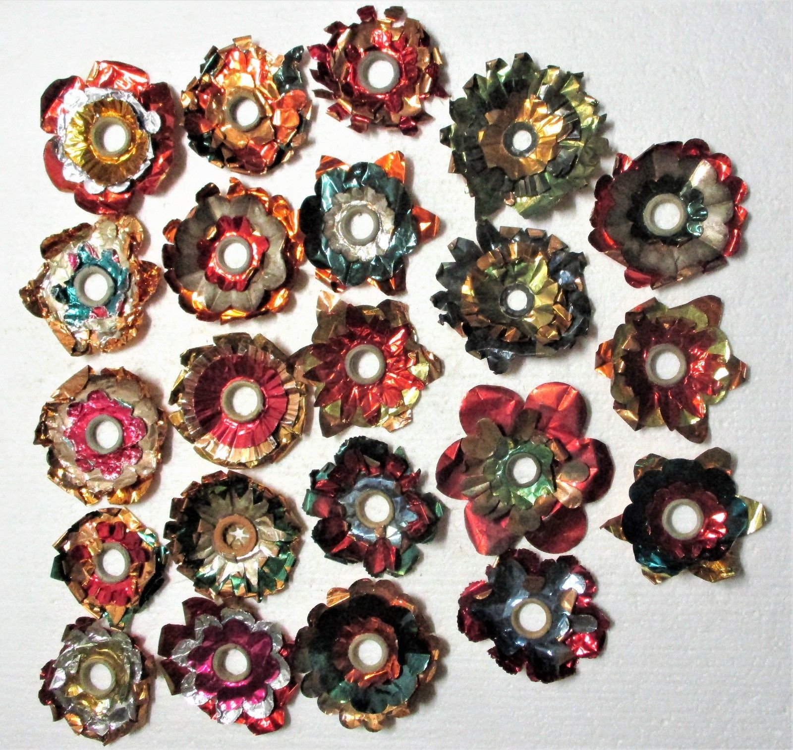 22 OLD MULTI-COLORED COPPER FOIL REFLECTORS FOR CHRISTMAS TREE LIGHTS