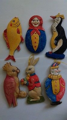 6 Antique CHRISTMAS DRESDEN pressed cardboard ornaments