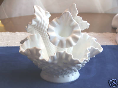 FENTON GLASS HOBNAIL MILK GLASS 3-part Epergne