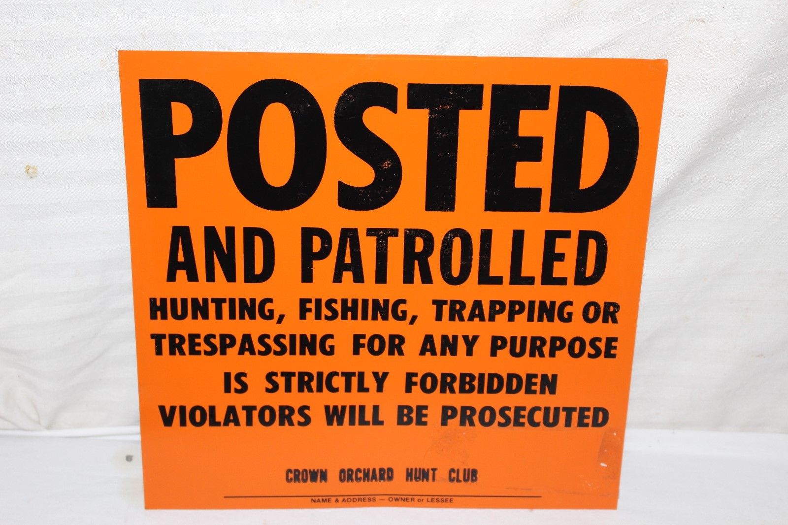 Vintage 1950''s No Trespassing Hunting Fishing Trapping Hunt Club Gas Oil Sign