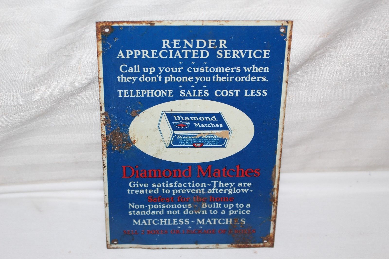 Vintage 1930''s Diamond Matches Cigar Cigarette Tobacco Gas Oil Metal Sign