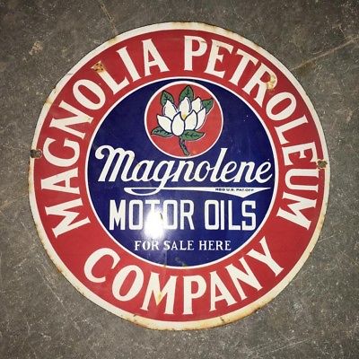 Porcelain Magnolia petroleum Enamel sign 12 inches