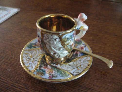 Capodimonte demitasse cup& saucer w/gold plated spoon