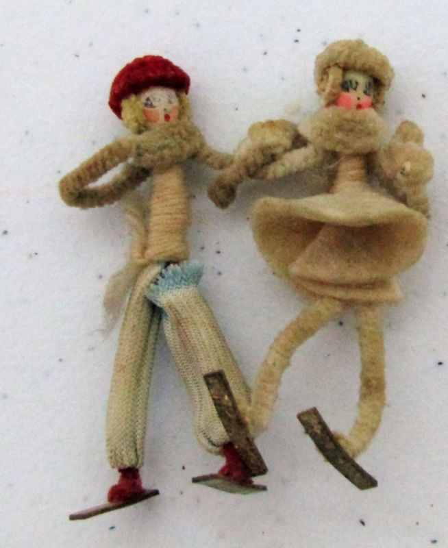 Title (ebay affiliate link): Vintage Pipe Cleaner figurine skaters Christmas Ornament-Porcelain faces