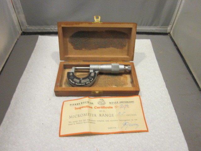 Title (ebay affiliate link): Vintage ETALON 0-1" Outside Micrometer Rolle Switzerland Machinist w/ Wood Box