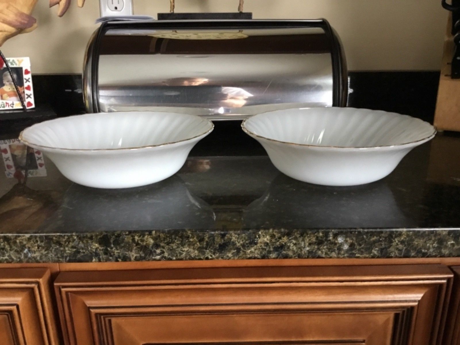 Title (ebay affiliate link): Anchor Hocking Milk Glass with Gold Rims Swirl serving bowl