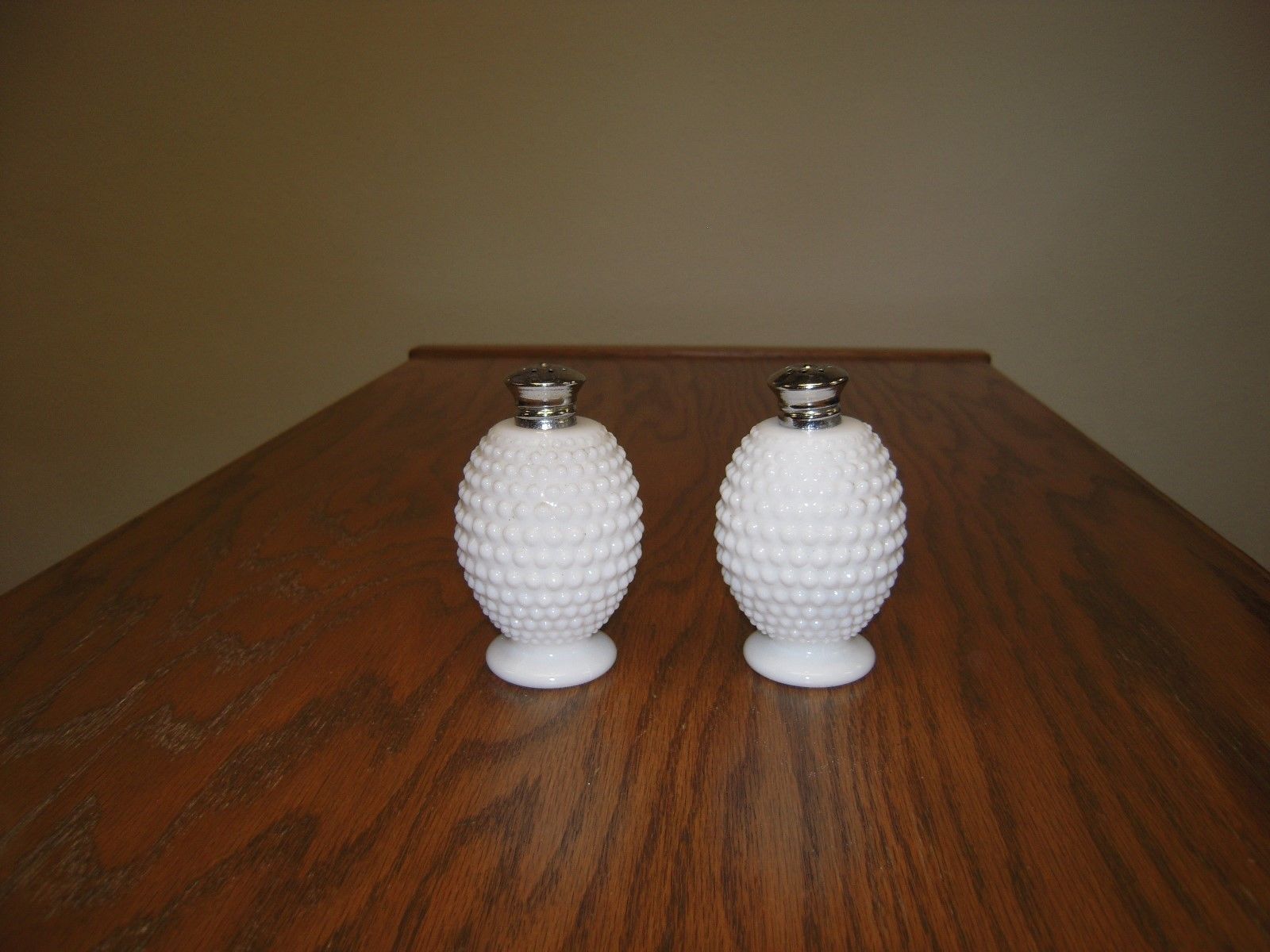 Title (ebay affiliate link): Vintage FENTON HOB NOB HOBNAIL White Milk Glass salt and pepper