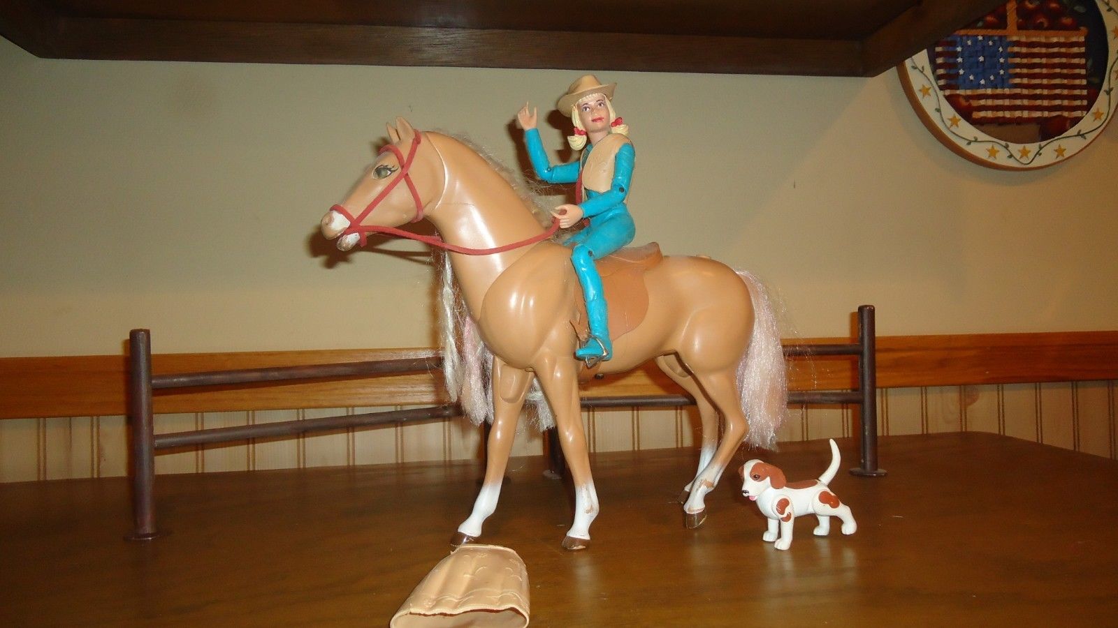 Marx Johnny West custom Josie West, pony, dog, and fence, nice