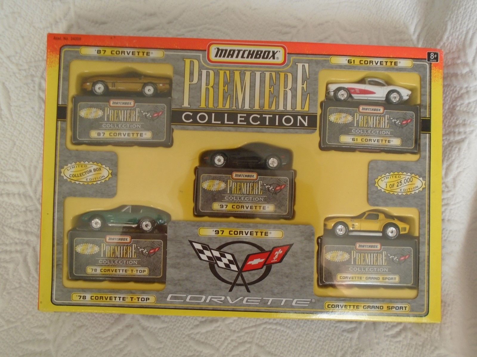 Title (ebay affiliate link): 1996 MATCHBOX PREMIER COLLECTION Corvette ''87 ''61 ''78 ''97 Grand Sport NIB