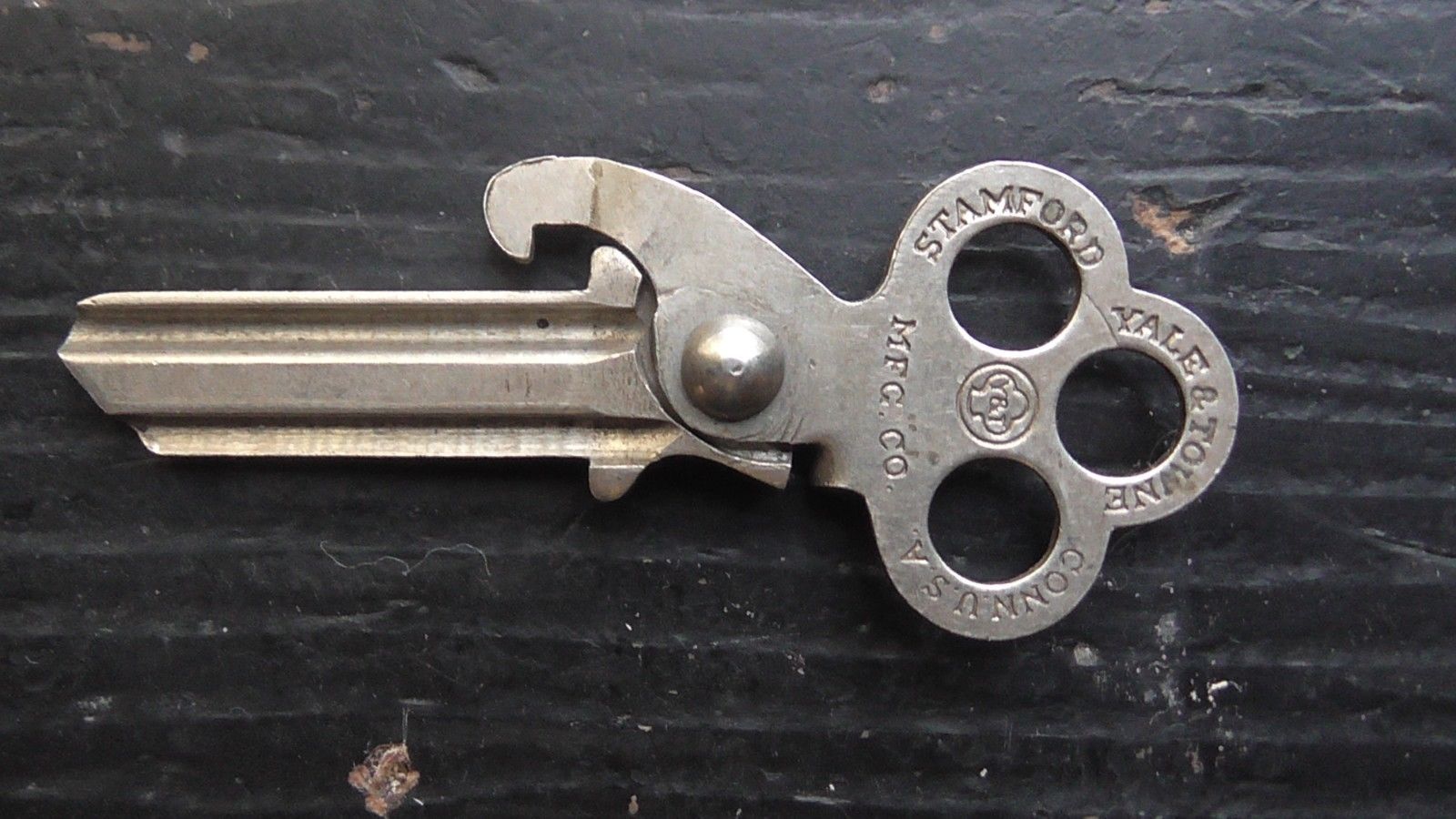 Title (ebay affiliate link): Fun Antique VTG Yale & Towne Post Office Box Lock Out Key Unusual Hinged Tool NR